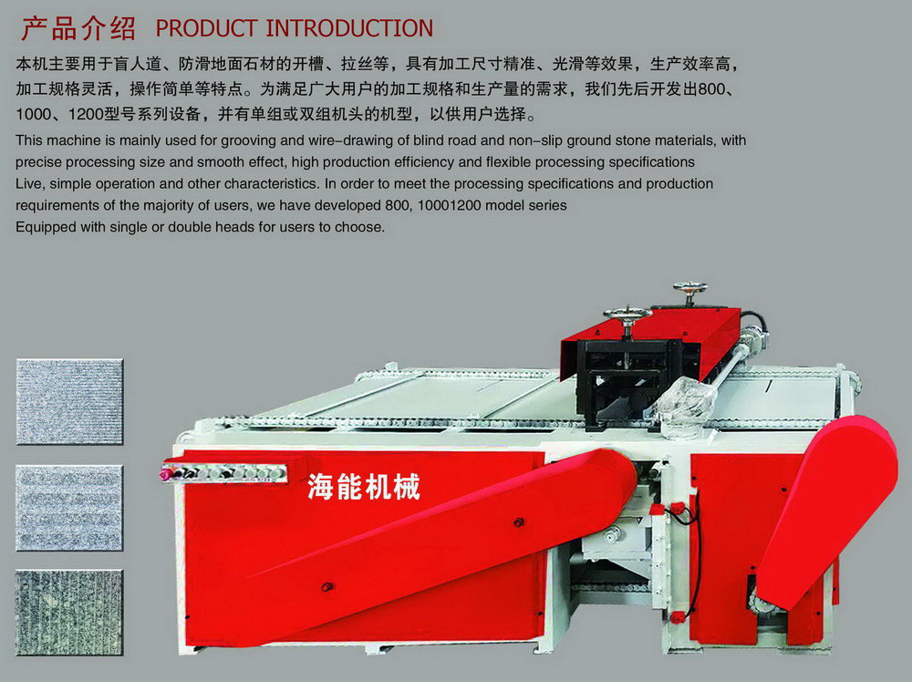 This machine is mainly used for grooving and wire-drawing of blind road and non-slip ground stone materials, with
